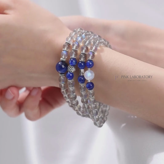 拉長石藍晶石念珠手鍊 108佛珠 925純銀手鏈