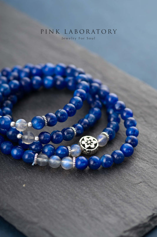 藍晶石佛珠108手鍊 | 925純銀 | 拉長石