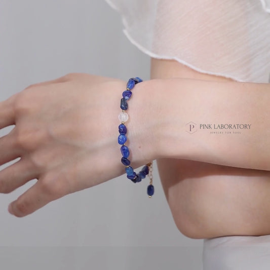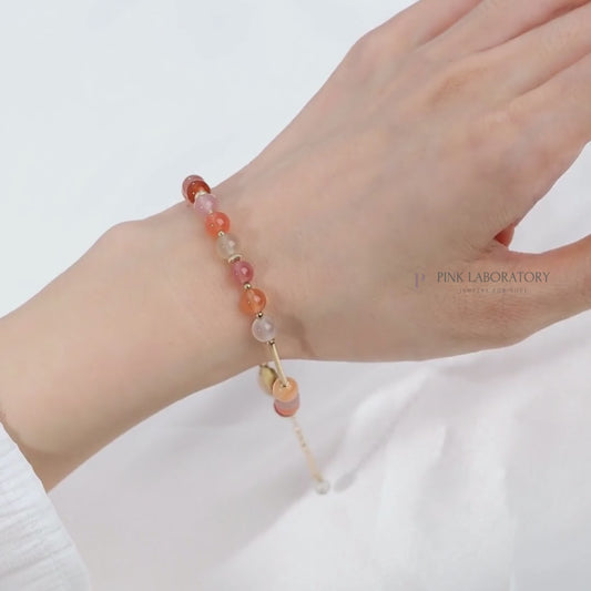 聚寶盆紅兔毛紅髮晶月亮石14KGF手鍊