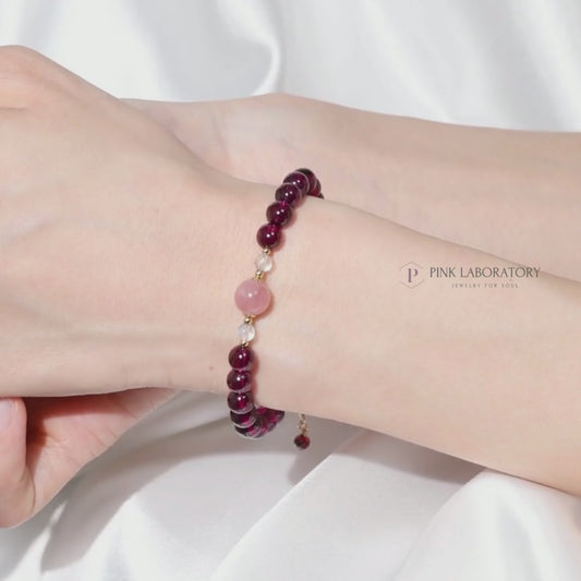 石榴石粉水晶月光石14k包金手鍊