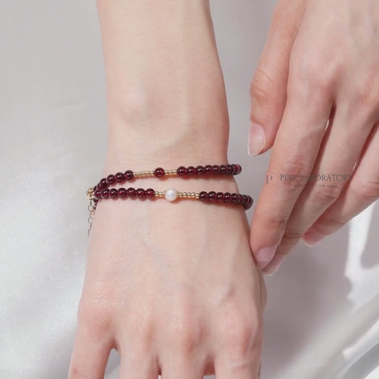 石榴石天然淡水珍珠14k包金手鍊