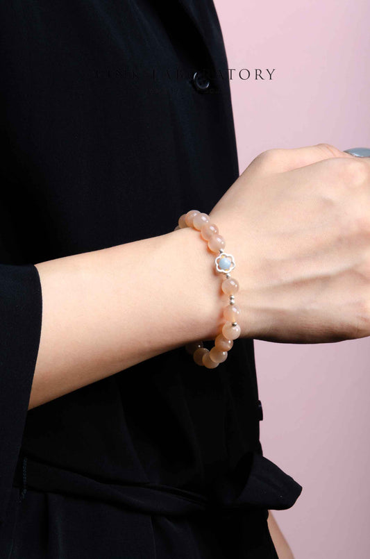 聚寶盆紅兔毛紅髮晶月亮石14KGF手鍊