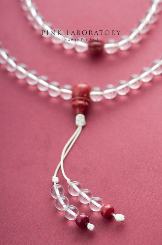白水晶紫金砂硃砂多圈念珠手鏈 | 108佛珠
