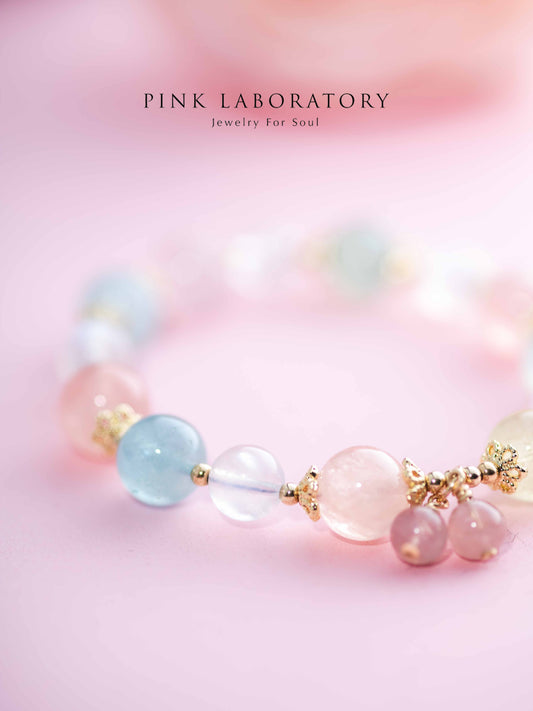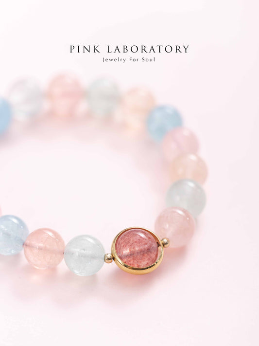 堇青石紫鋰輝草莓晶14K鍍金手鍊