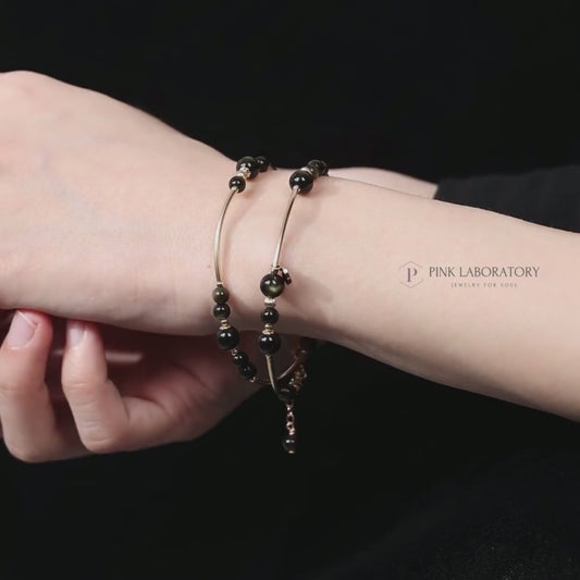 黑髮晶金曜石手鍊 | 不規則黑曜石 | 14K包金