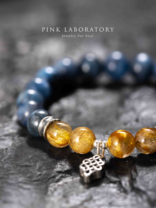 藍晶石金鈦晶如意結925純銀手鍊