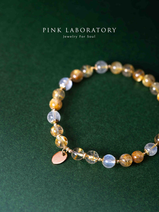 金髮晶月亮石14K包金6mm手鍊