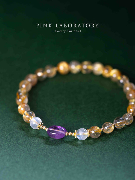 金髮晶紫水晶月亮石14K鍍金手鍊