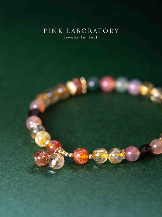 金髮晶金太陽石鹽源瑪瑙14K鍍金手鍊