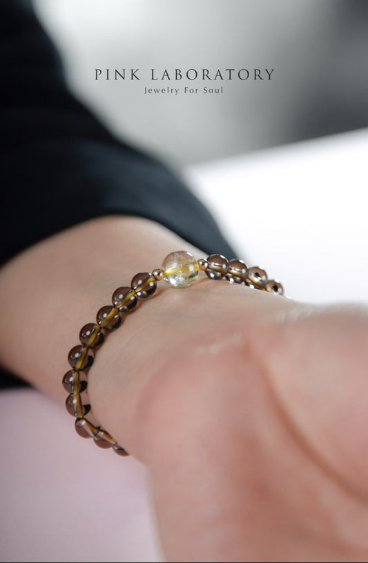 茶水晶金髮晶煙晶手鍊 | 6mm | 14K包金
