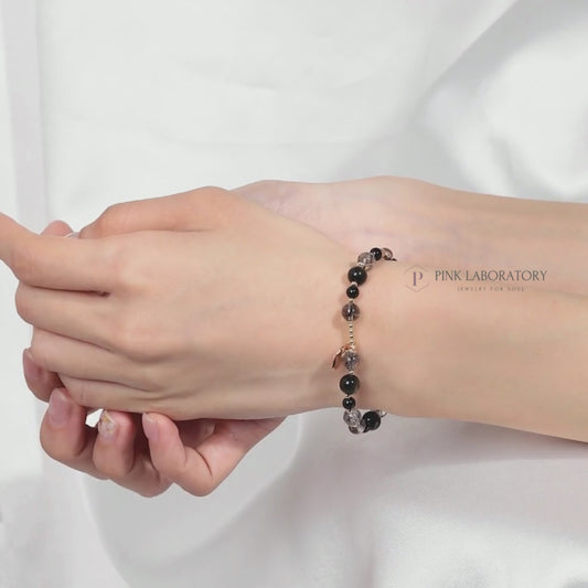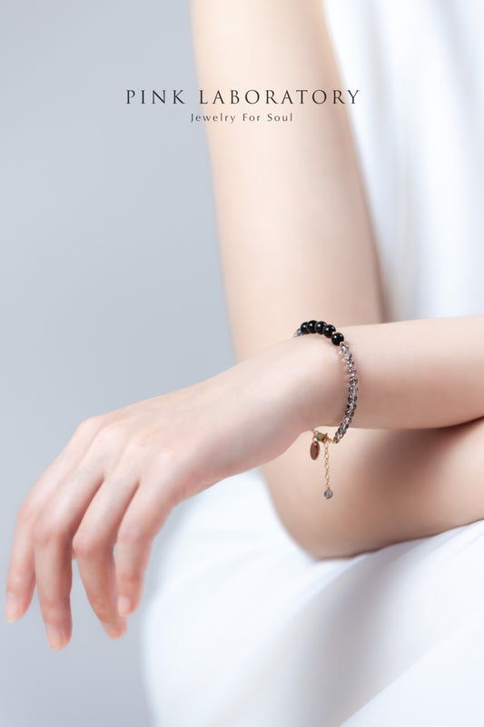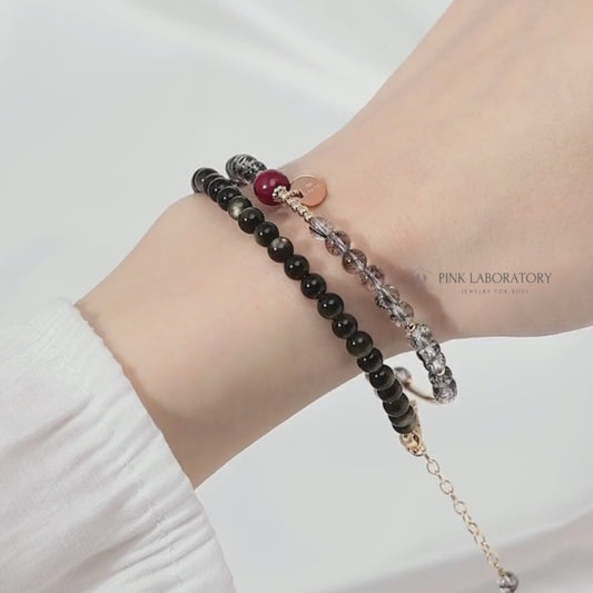 黑髮晶黑曜石硃砂4mm設計手鍊 | 辟邪防小人水晶