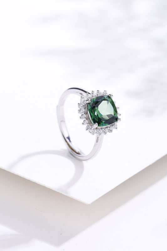 綠碧璽方形戒指 | 925純銀鍍白金