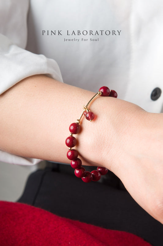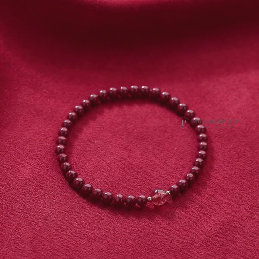 95%紫金砂硃砂4mm草莓晶手鏈 | 14K包金