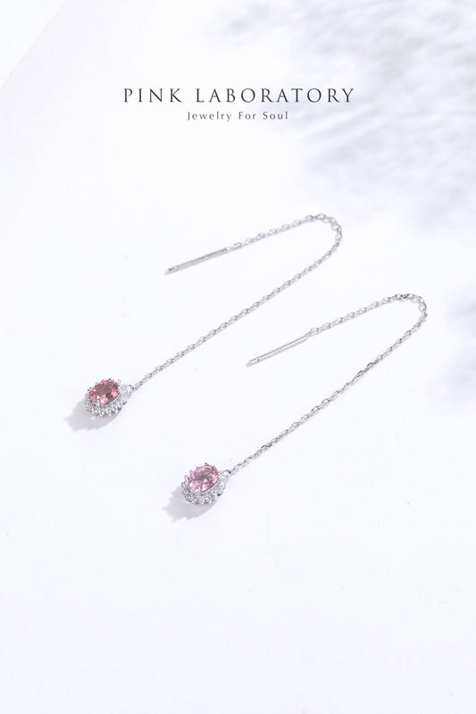粉紅碧璽耳環 | 925純銀鍍白金耳線