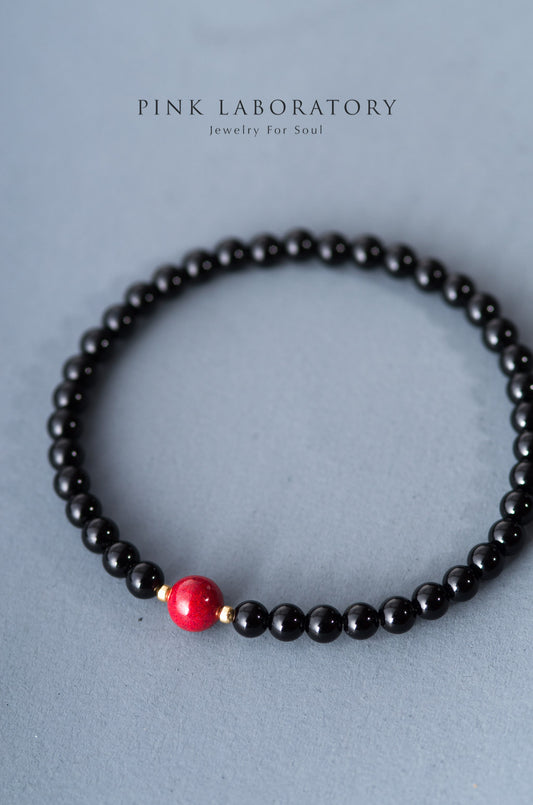 黑瑪瑙硃砂手鏈 | 14K包金