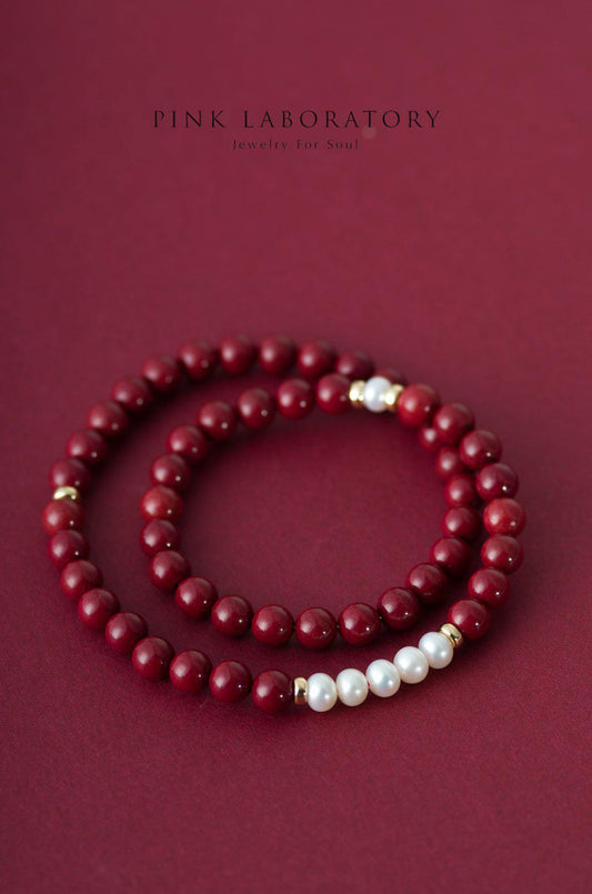 紫金砂硃砂 6mm 雙圈手鏈 | 珍珠
