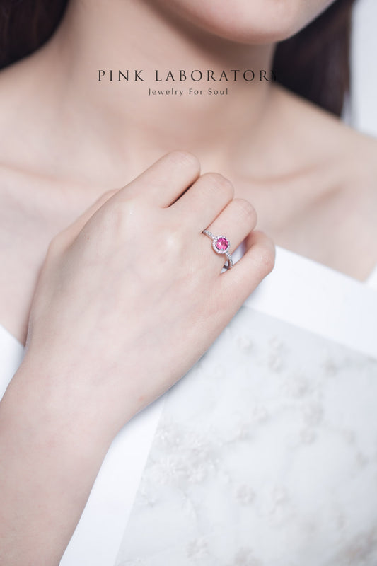 粉紅碧璽戒指 | 925純銀精鍍亮澤白金