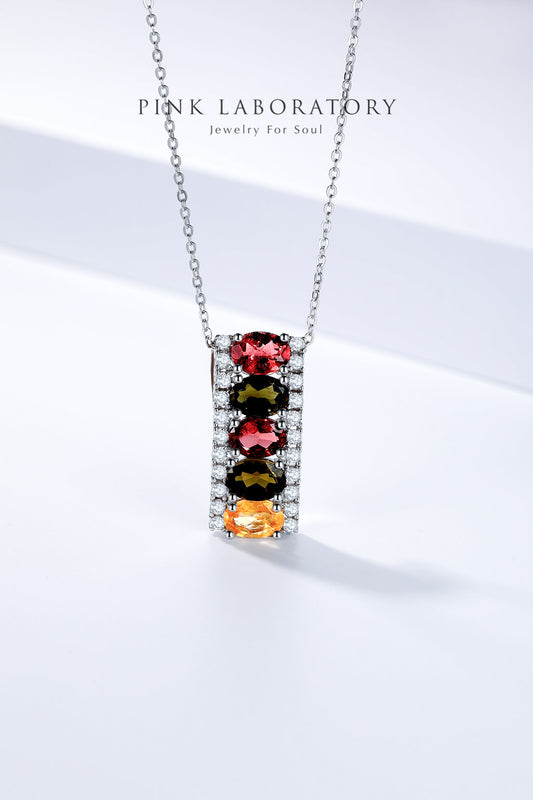 碧璽鋯石吊墜 | 925純銀鍍白金頸鍊