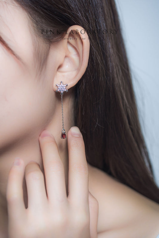 粉碧璽雪花耳環 | 925純銀鍍白金耳釘