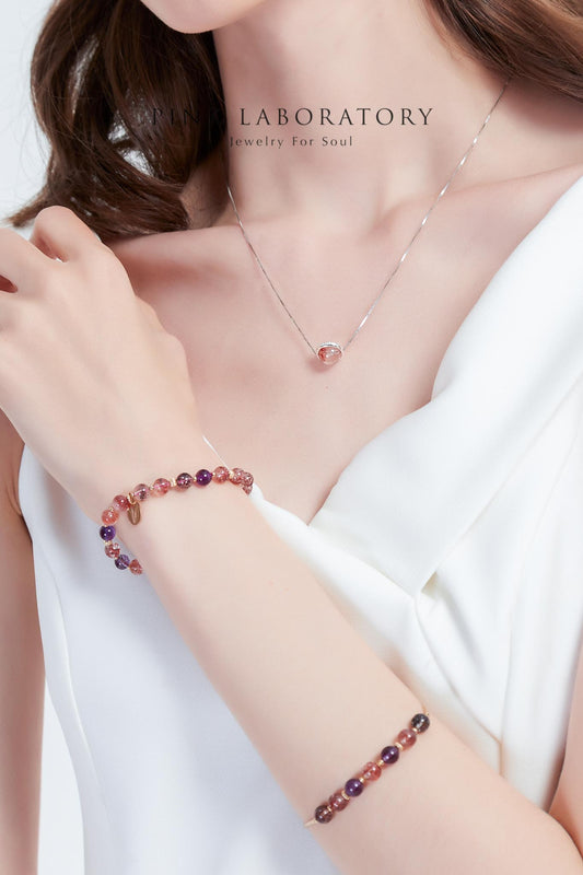 紅超七吊墜 | 金草莓晶925純銀項鍊