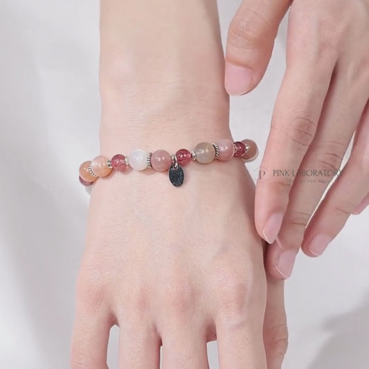 橙月光石草莓晶925純銀手鍊