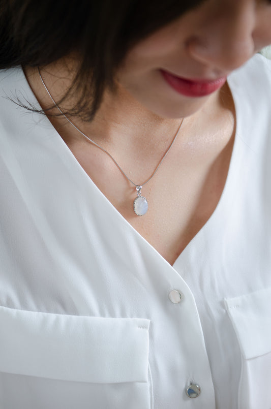 斯里蘭卡月光石925純銀吊墜項鍊 | 藍光月光石水晶頸鏈