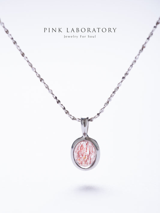 紅超七吊墜 | 金草莓晶925純銀項鍊 | 一物一圖