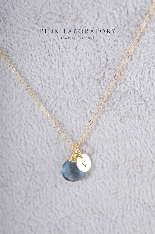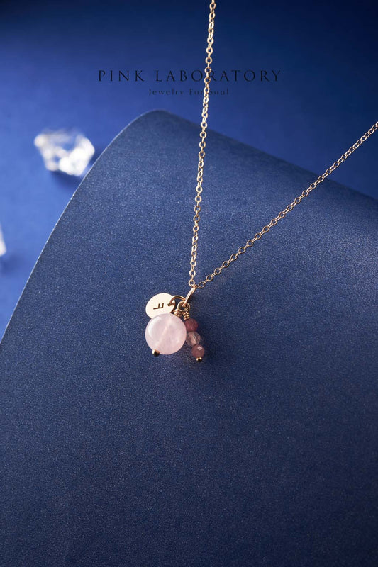 粉水晶字母項鍊吊墜 | 14K包金頸鍊