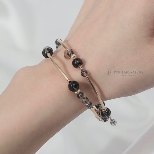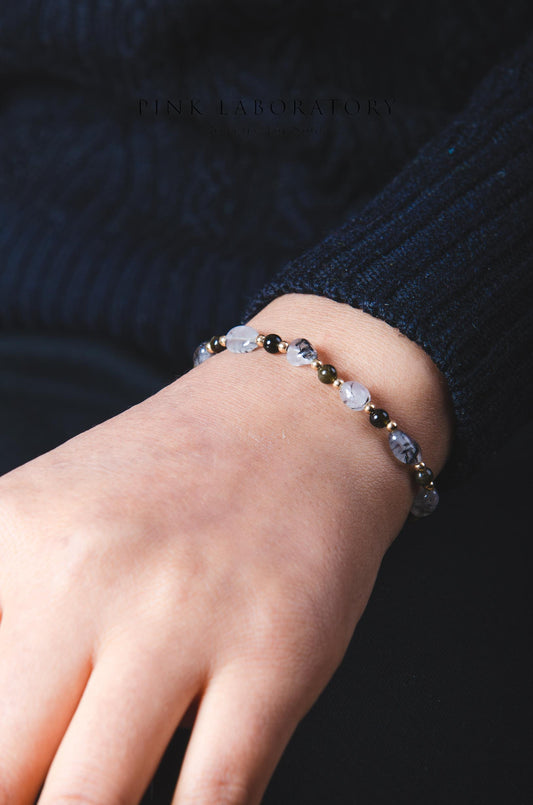 黑髮晶金曜石手鍊 | 不規則黑曜石 | 14K包金