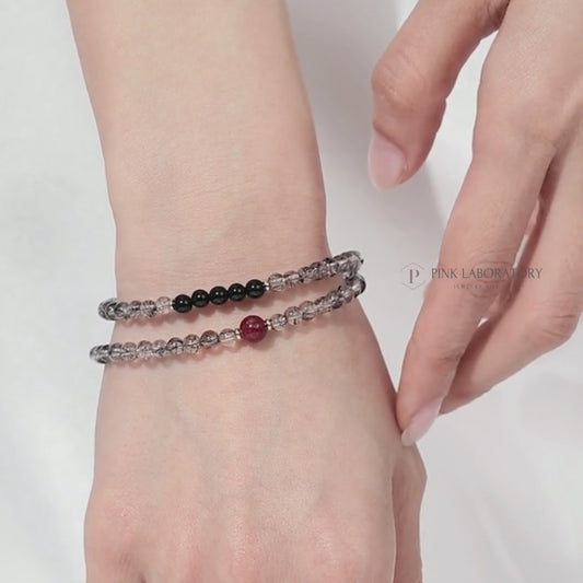 黑髮晶黑曜石硃砂4mm設計手鍊 | 辟邪防小人水晶