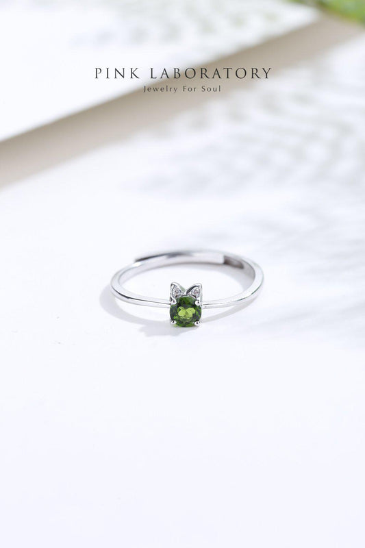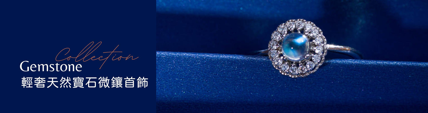 藍光玻璃體月光石戒指 | 925純銀精鍍亮澤白金