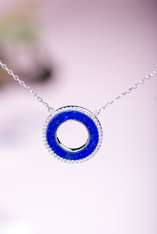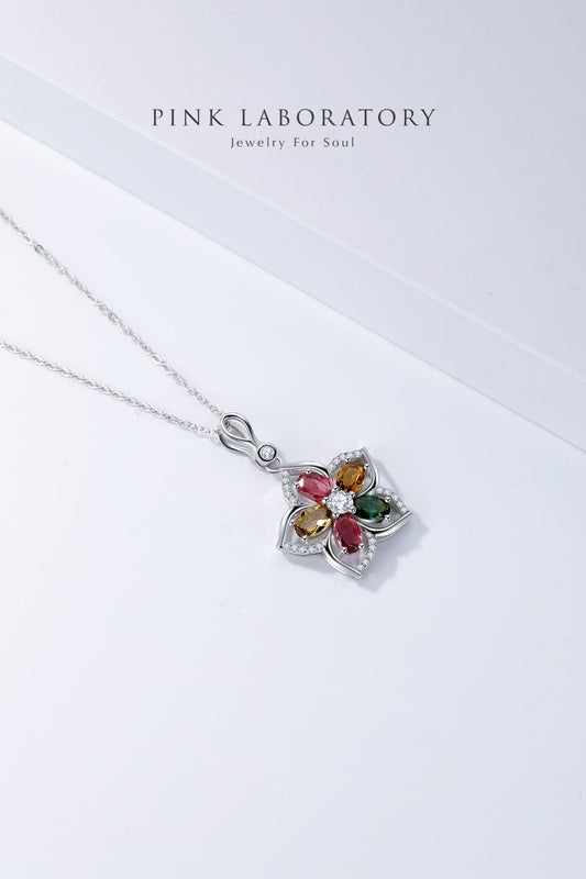 碧璽梅花鋯石吊墜項鍊 | 925純銀鍍白金頸鍊
