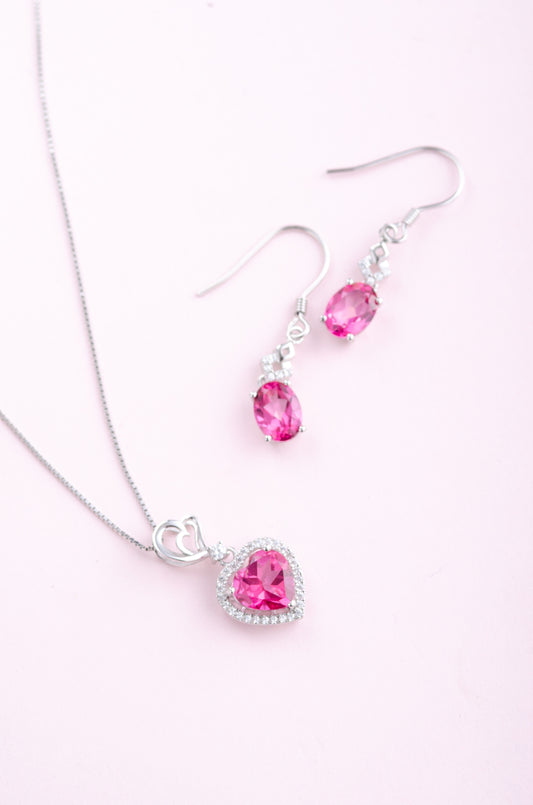 碧璽梅花鋯石吊墜 | 925純銀精鍍亮澤白金