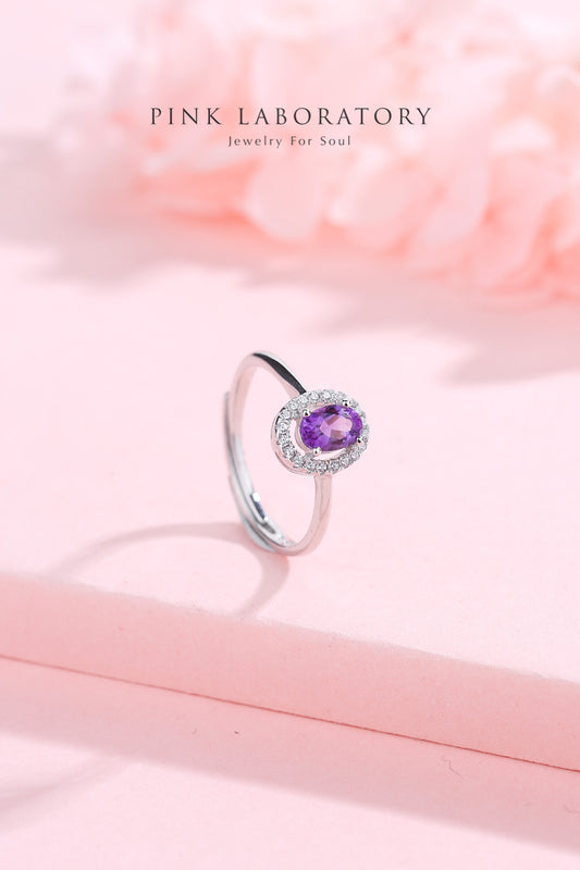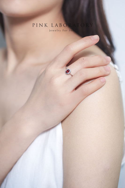 石榴石戒指 | 925純銀精鍍亮澤白金戒指