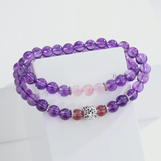 紫水晶草莓晶925純銀雙圈手鍊