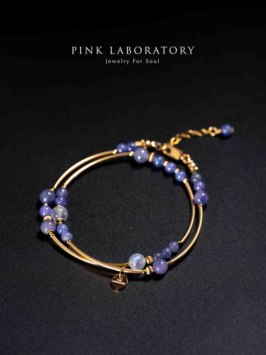 堇青石紫鋰輝草莓晶14K鍍金手鍊