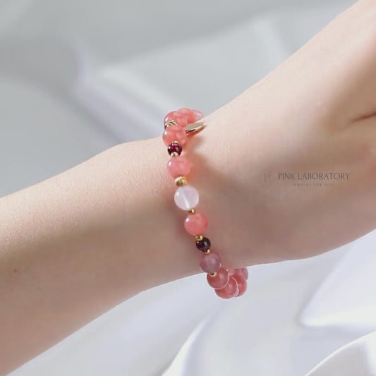 草莓晶珍珠手鍊 | 拉長石 | 石榴石