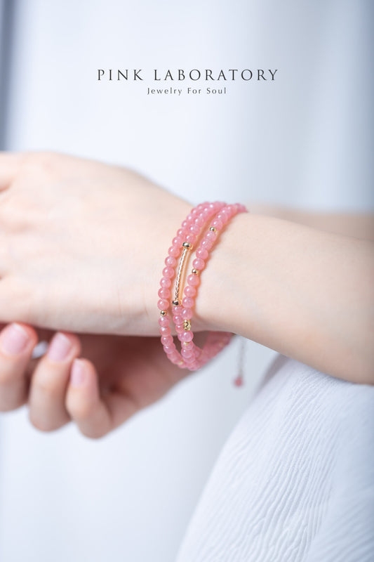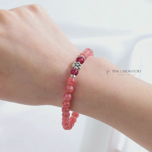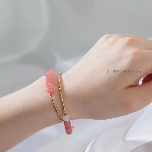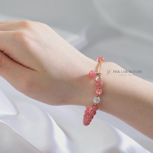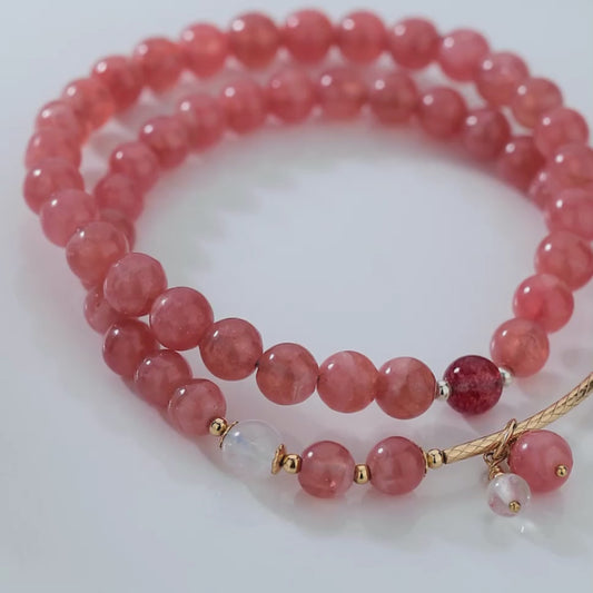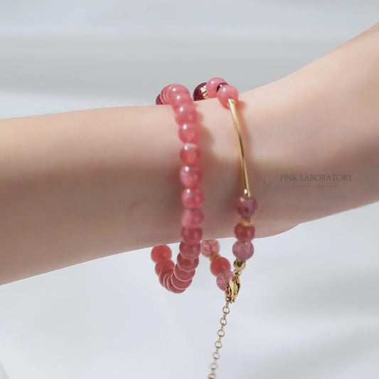 冰種紅紋石草莓晶珍珠14KGF愛情水晶手鍊