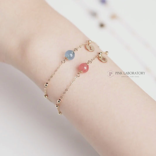 冰種紅紋石愛情水晶14KGF字母手鍊