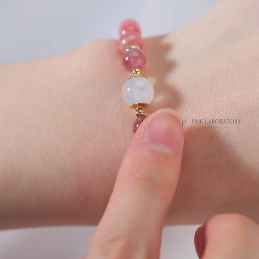 冰種紅紋石月亮石草莓晶14KGF手鍊