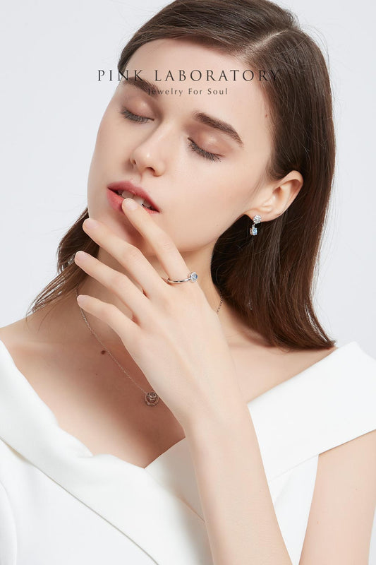 藍光玻璃體月光石戒指 | 925純銀鍍白金