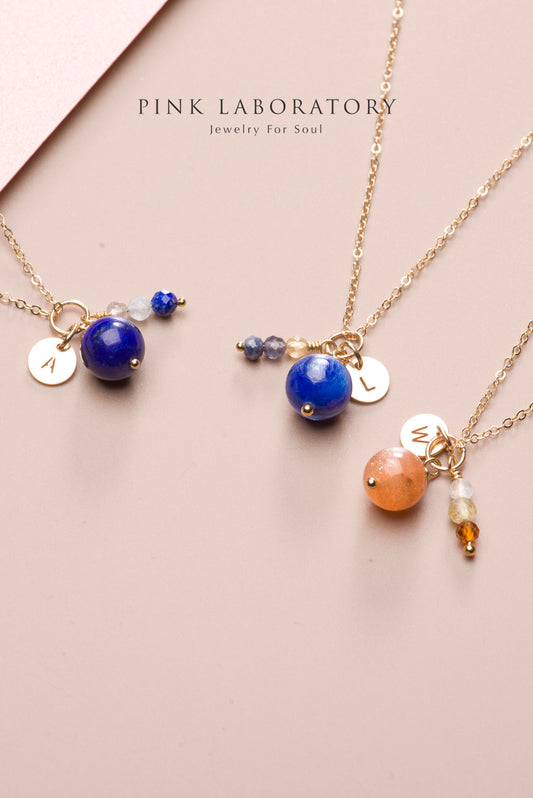 太陽石字母項鍊吊墜 | 14K包金頸鍊