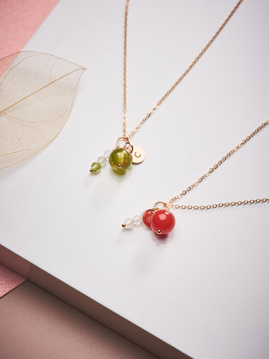紅瑪瑙字母項鍊吊墜 | 14K包金頸鍊