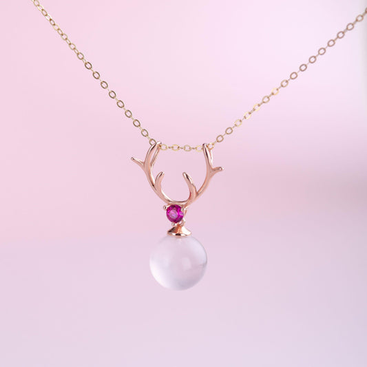 鹿角粉水晶925純銀鍍金鋯石項鍊
