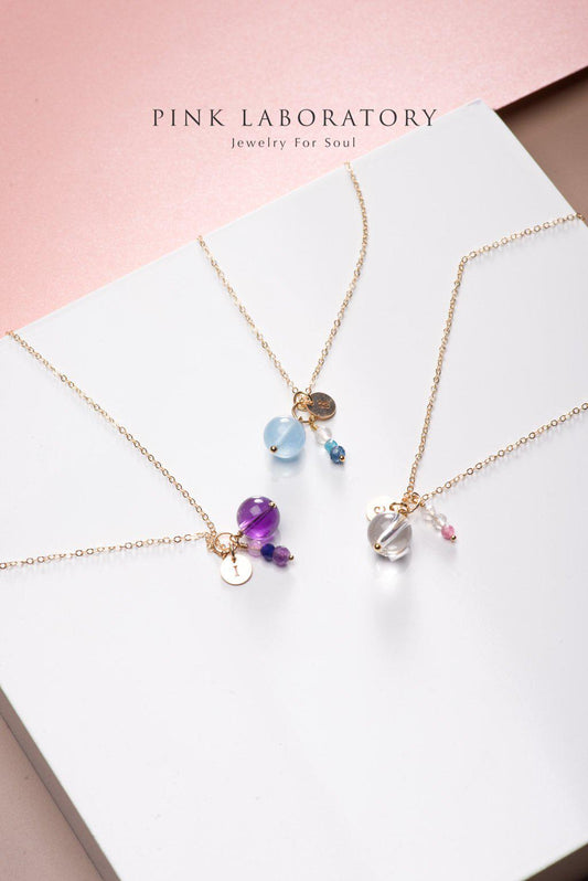 白水晶字母項鍊吊墜 | 14K包金頸鍊