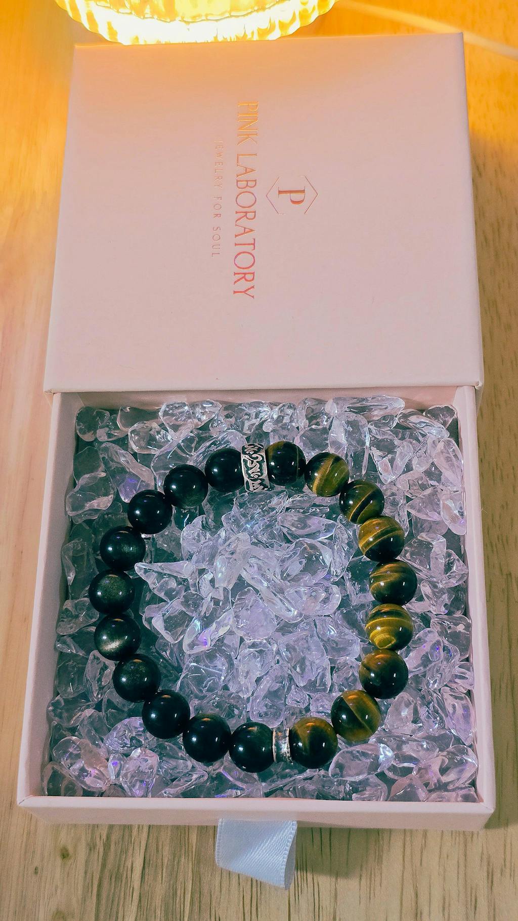 尋找很久腦中想要的款式:黑曜 虎眼 六字大明 手作,隨緣找到完美符合,很棒的緣分。